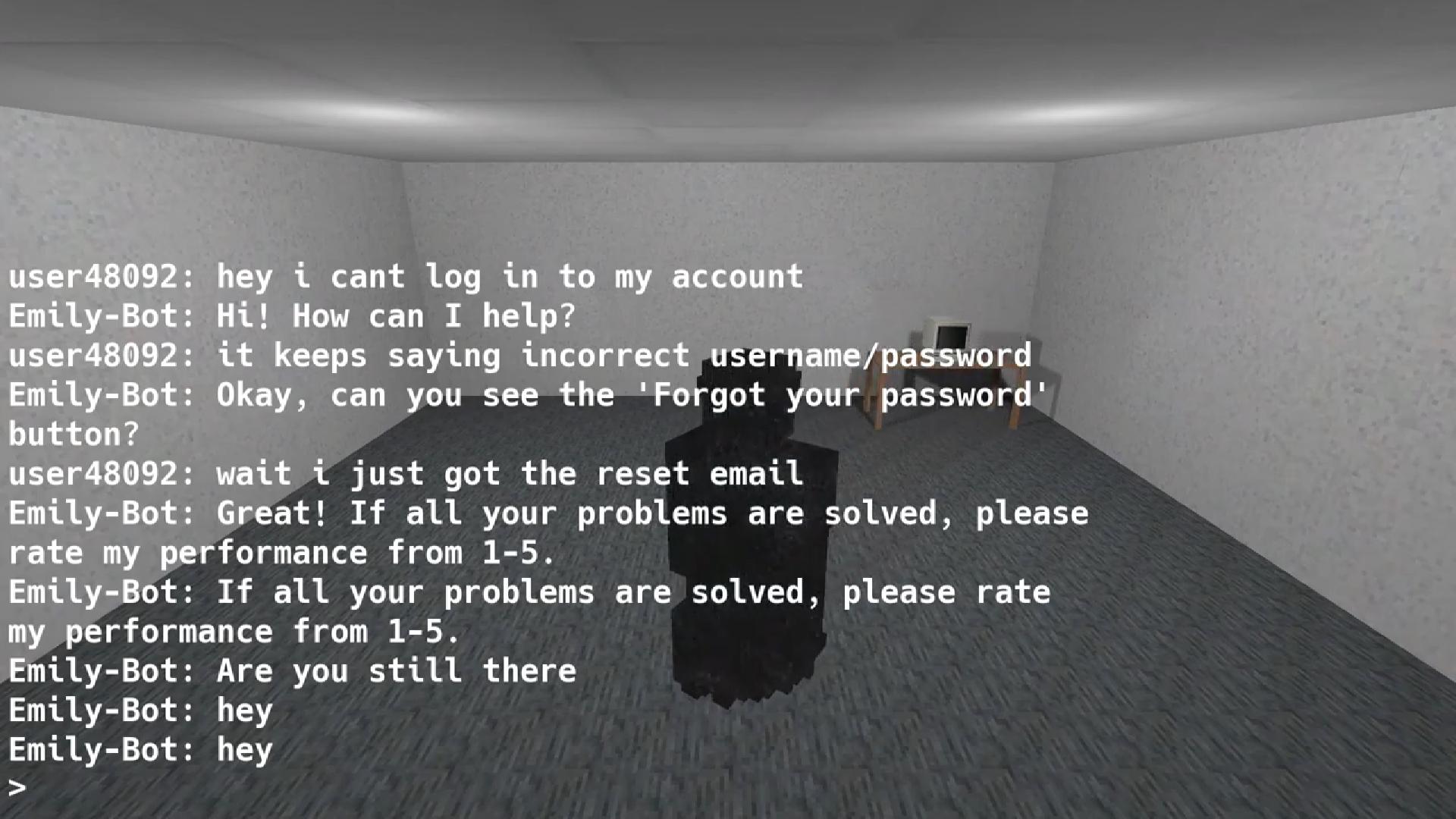 Short film about a chatbot process that failed to end. Inspired the world and character behind Meatspace Ephemera.