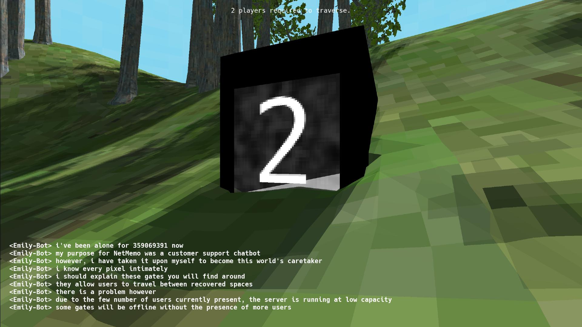 An online game about a dying server. Players explore the memories immortalised by dot-com failure NetMemo. They are guided by Emily-bot, a chatbot process that failed to die.