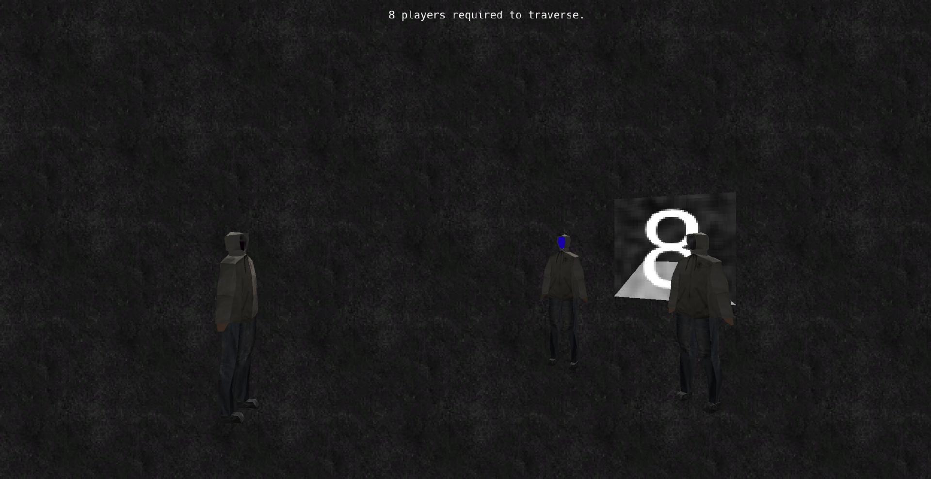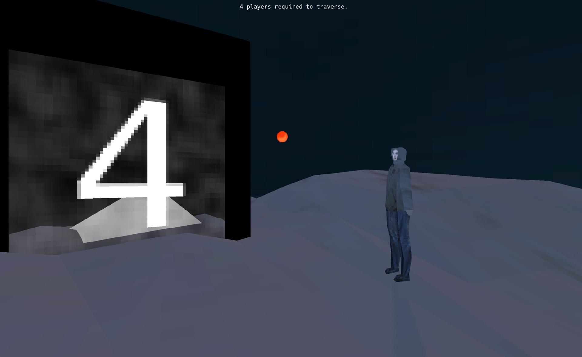 The core mechanic of Meatspace Ephemera is the ‘gates’ that require a minimum number of players to traverse. The initial player must share their code with others in order to see more of the world; first two, then four, and finally eight players exploring the world at once, seeking hidden spaces together.